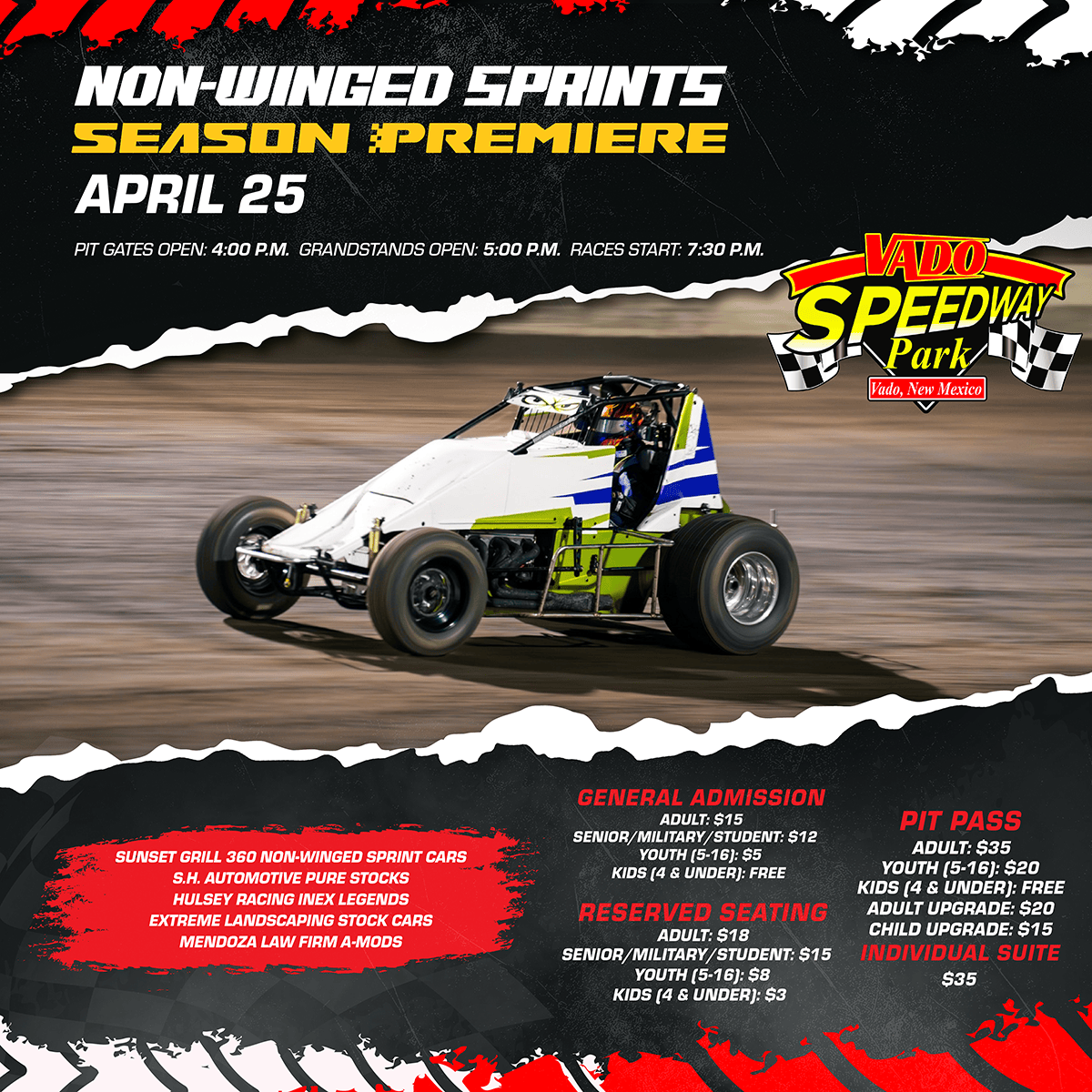 | Pit Pass Youth (5 – 16) | $20 |