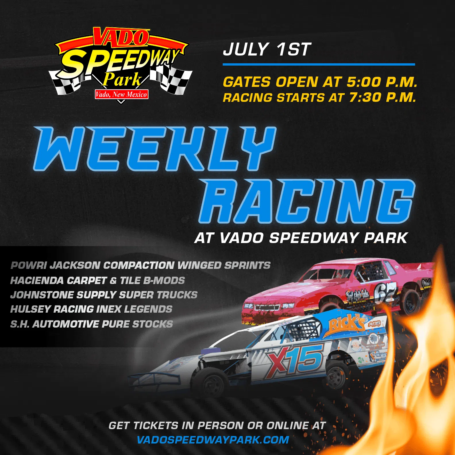🏁 Get ready for an exhilarating Saturday night at Vado Speedway Park, Saturday, July 1st! 🏁